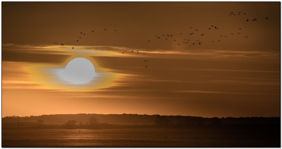 Jak się ma dużo szczęścia, to żurawie przelecą przed tarczą słoneczną. Mają na to niecałe 7 minut. Potem słońce znika.